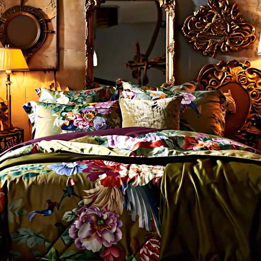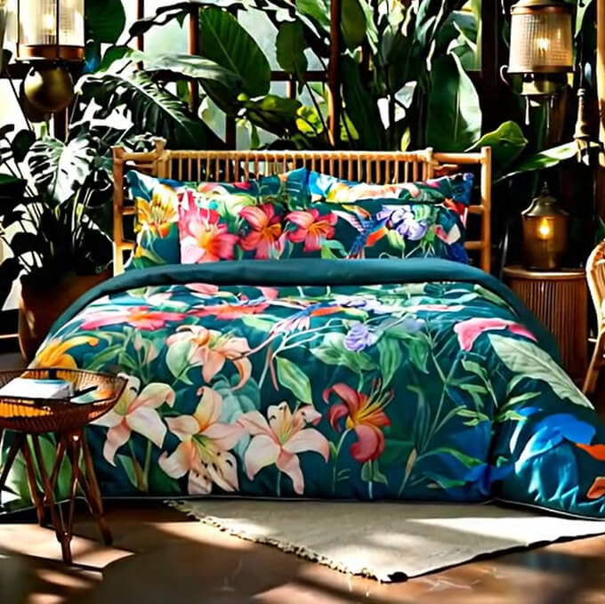 Our Bonita quilt cover set will bring a dramatic change to any bedroom. The quilt cover is mass of flowers and foliage interspaced with exotic birds. The reverse has anoversizedgraphicalleaf pattern.It's an exciting look that is totally suited those who aren't afraid to be bold with their decor.