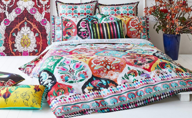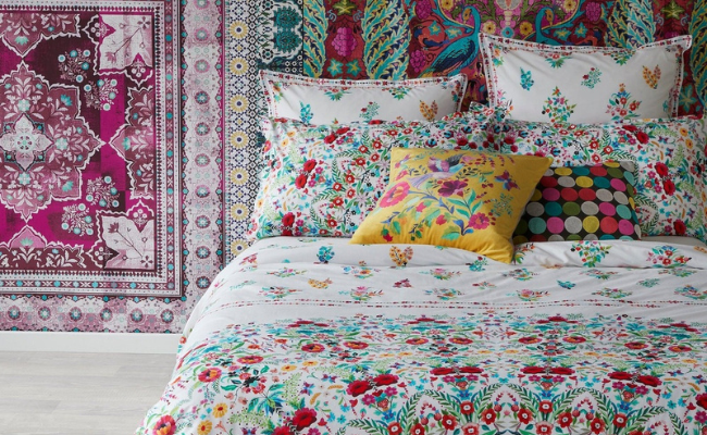 The vibrant colours of the Bonitaquilt cover sets pattern are achieved through the use of the latest digital technology printed directly on a 100% cotton fabric with a dobby weave that has a woven mini check pattern the reverse is a 100% cotton with a percale weave.